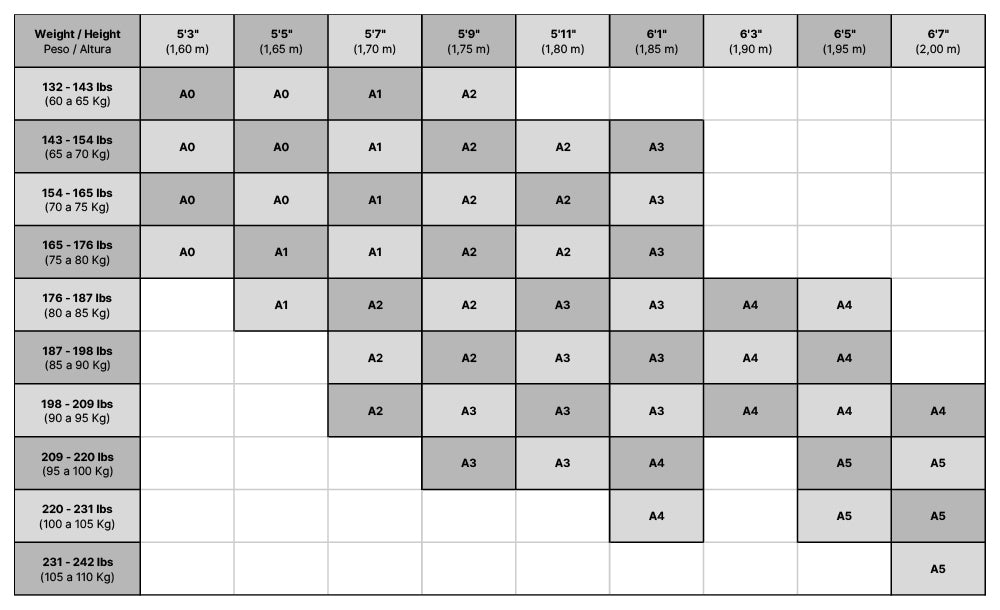 *Size Chart should be considered an estimate. Please keep in mind that each person's unique body type/shape will alter the fit of the Gi. Also keep in mind your personal preference for fit. Some athletes prefer a more fitted cut, others may like more room in the body