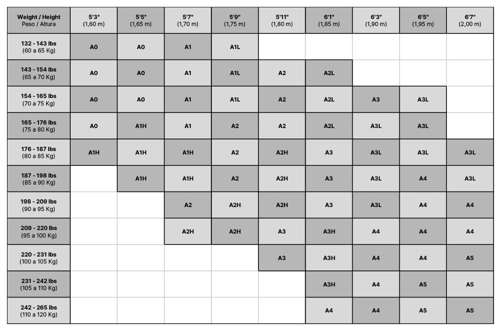 *Size Chart should be considered an estimate. Please keep in mind that each person's unique body type/shape will alter the fit of the Gi. Also keep in mind your personal preference for fit. Some athletes prefer a more fitted cut, others may like more room in the body.